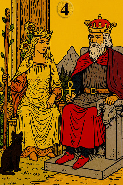1. Dual Thrones – The Emperor (authority) and Queen of Wands (passion, intuition) sit together.